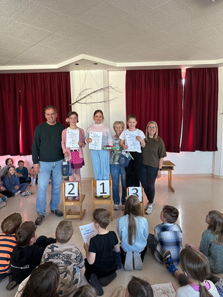 Zur feierlichen Siegerehrung versammelten sich alle in der Aula. Auch Herr Direktor Bernd Binderbauer war anwesend und gratulierte den Kindern zu ihren tollen Leistungen. Aus jeder Schulstufe wurden die drei besten SchülerInnen besonders ausgezeichnet.